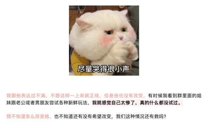 当你在床上对新鲜事物跃跃欲试的时候,你的伴侣却只想高频输出, 俩人的想法根本不在一个频道上,这种时候你会不会非常苦恼?